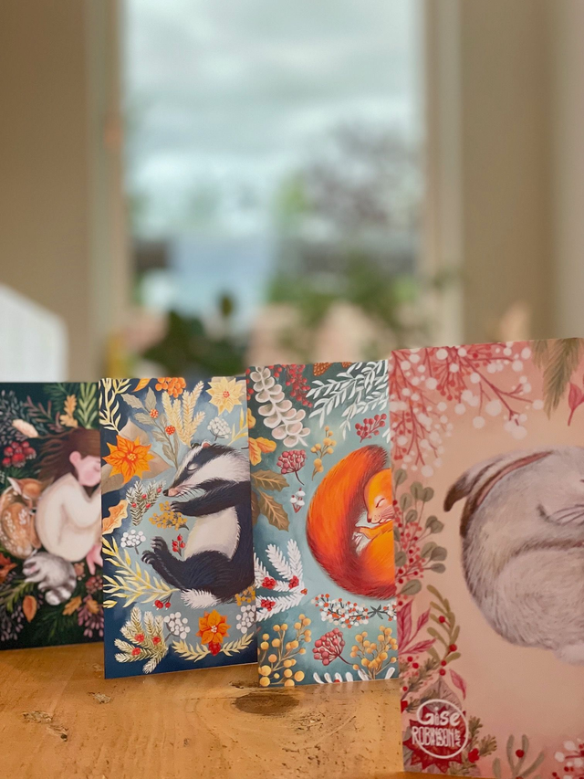 These greeting cards are designed based on my original gouache illustrations .